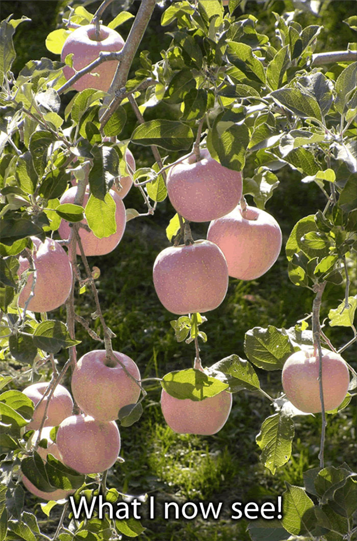 第一張照片展示的是普通人眼所能感知的顏色,第二張照片展示的是色盲如何看到顏色,第三張照片展示的是應(yīng)用程序如何幫助他們