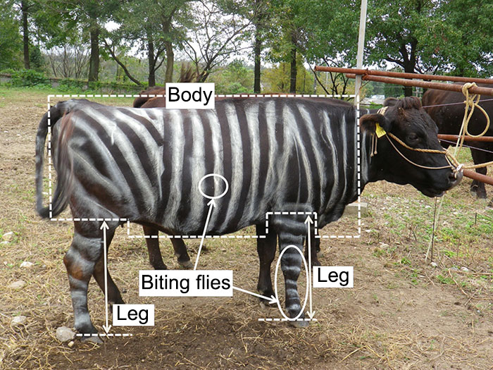 進行條紋奶牛研究的日本研究人員表示,他們的發(fā)現(xiàn)很重要,因為它們表明,殺蟲劑在驅(qū)趕害蟲方面不如用無毒材料在奶牛毛皮上畫條紋那樣有效。它是便宜的。它是健康的。它是環(huán)保的。有什么不喜歡的?