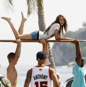 為了擺脫Hannah Montana里乖乖女的形象,Miley當(dāng)天穿了一身性感的搖滾裝,蕾絲緊身上衣,漁網(wǎng)裝搭配一條很有Gaga風(fēng)格的短褲,唱的是自己的新歌Can't Be Tamed。