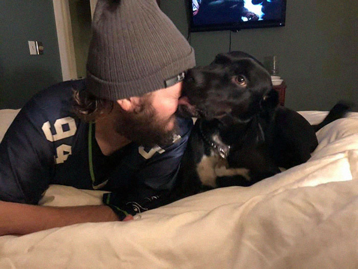 Percy was dumped at a shelter because he was “too aggressive” I adopted him in May 2019, and since then he’s lost 25lbs (per vet recommendation) and has become my best friend and running partner for life. I just finished knitting him a hat and scarf for his first midwestern winter!
