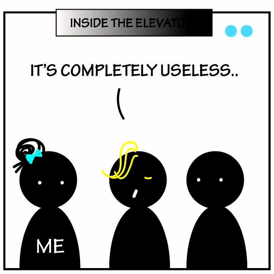 People take elevators every day and sometimes have conversations in them. Some of them are sad, some are heated and some are funny. I kept the ones I found the most amusing on my iPhone and started drawing them out whenever I got the chance. It’s very curious how in a small space, in such a short amount of time, there’s so much information exchanged and emotions expressed. I only drew what really happened, nothing is made up. I hope you enjoy my post. Thank you.