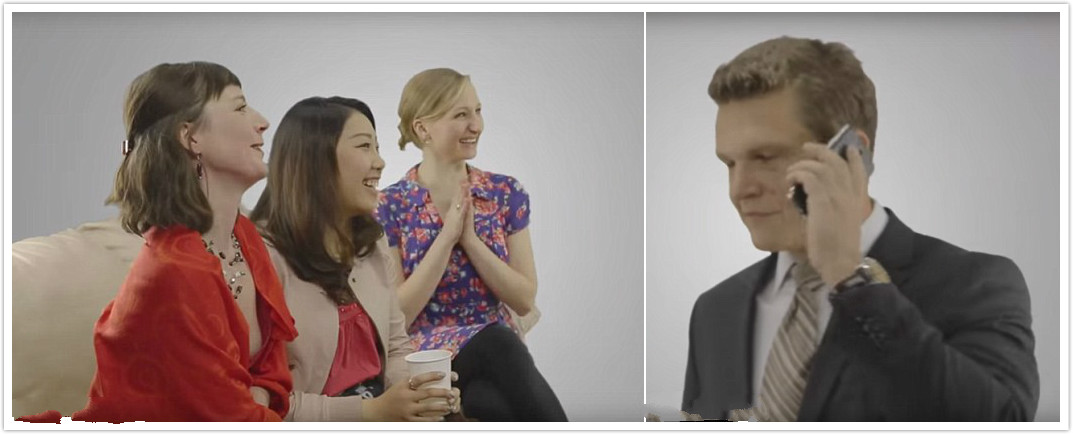 對于西裝領帶的商人打扮,女生們顯然更為偏愛,當看到這身打扮時,女生們拍手微笑。